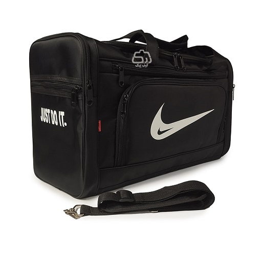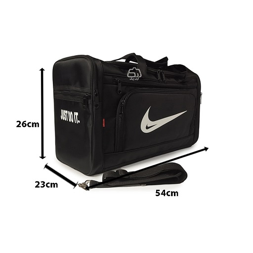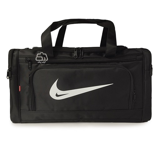 ساک ورزشی نایک دو دسته قابل شستشو دارای بند دوشی بلند و قابل تنظیم دارای دو جیب زیپ دار در جلوی ساک دارای جیب های بزرگ در دو طرف ساک