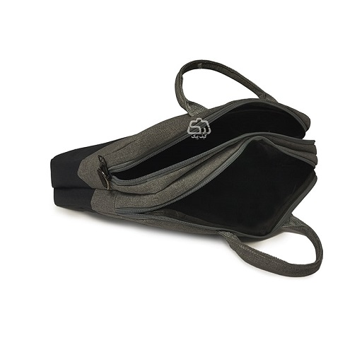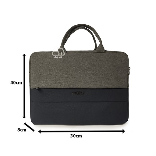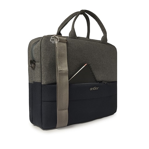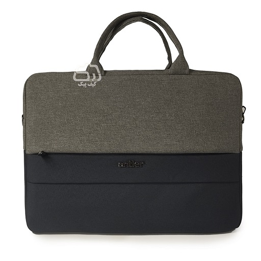 کیف اداری انتلر دودسته ابردوزی شده دارای دو فضای جداگانه برای نگهداری وسایل دارای بند قابل تنظیم دارای یک جیب در جلوی کیف رنگ طوسی سرمه ای